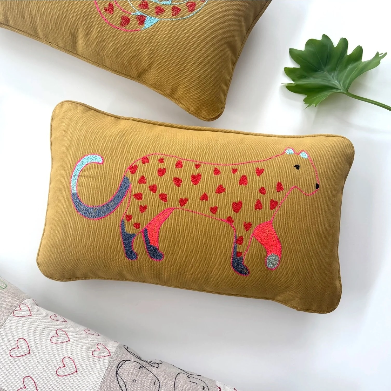 This leopard is a lover not a fighter. ❤️ 10”x16” in gold organic cotton duck.